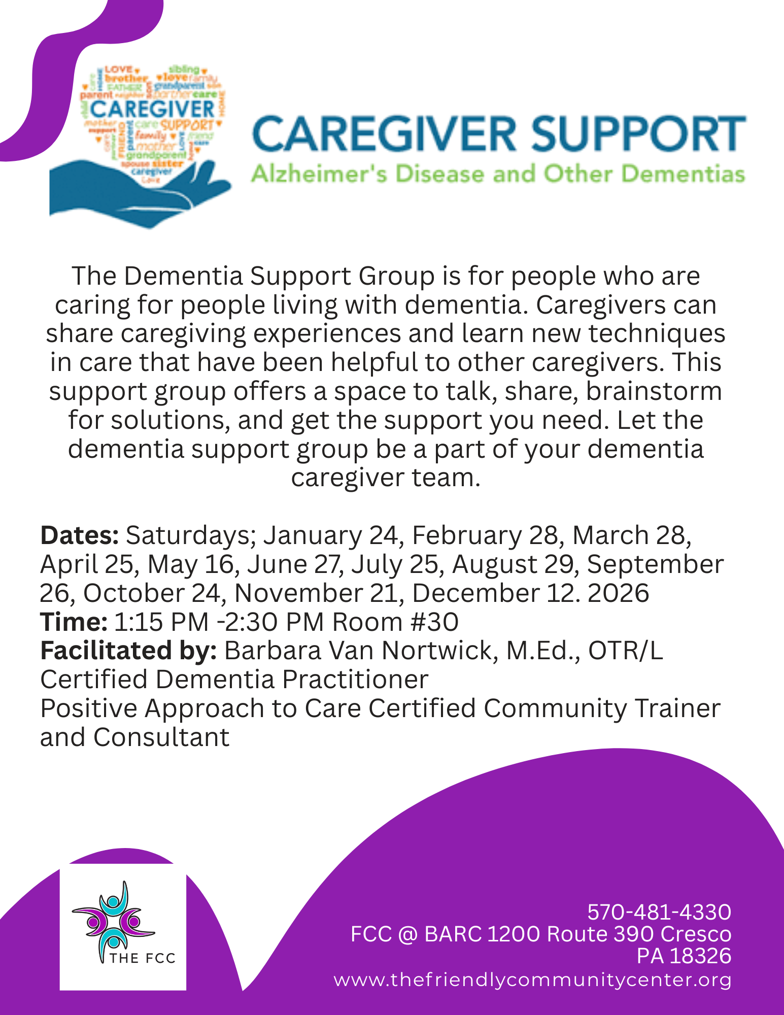 DEMENTIA CAREGIVER SUPPORT GROUP AT BARC 1200 Route 390 Cresco PA 18326